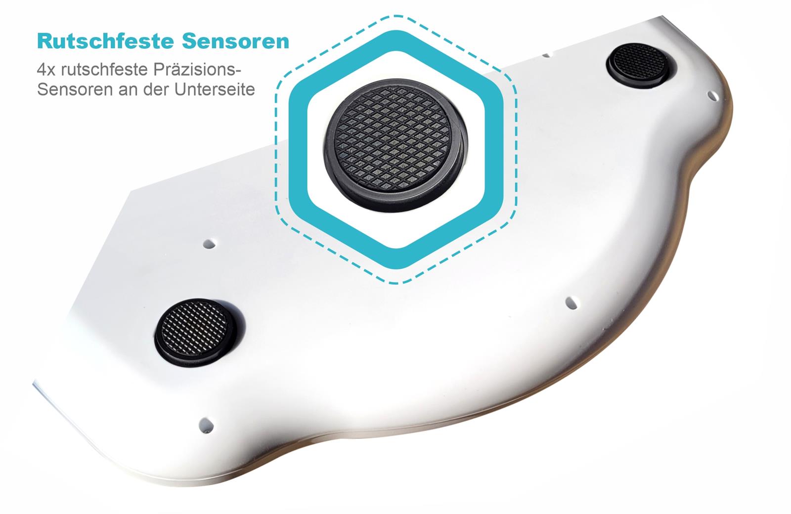 - Große Wiegeplattform mit 60 × 26 Zentimeter Abmessungen für sicheres Positionieren