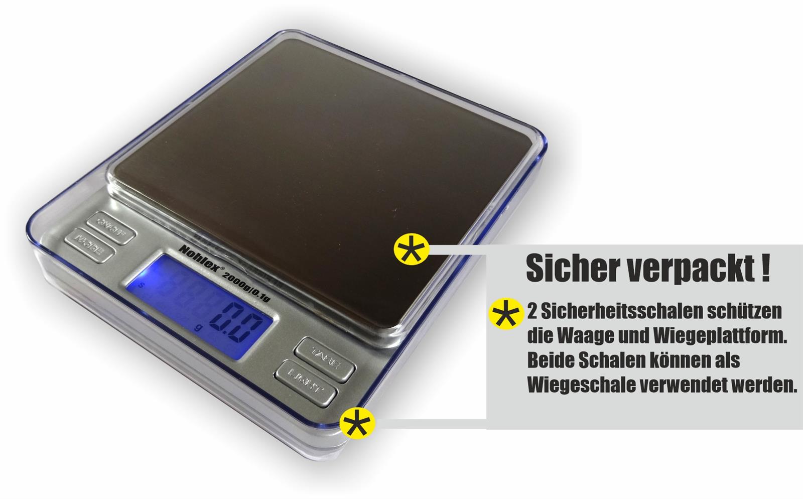 - Hohe Präzision von 0,1 Gramm bei bis zu 2 Kilogramm Wägebereich – ideal für exakte Messungen