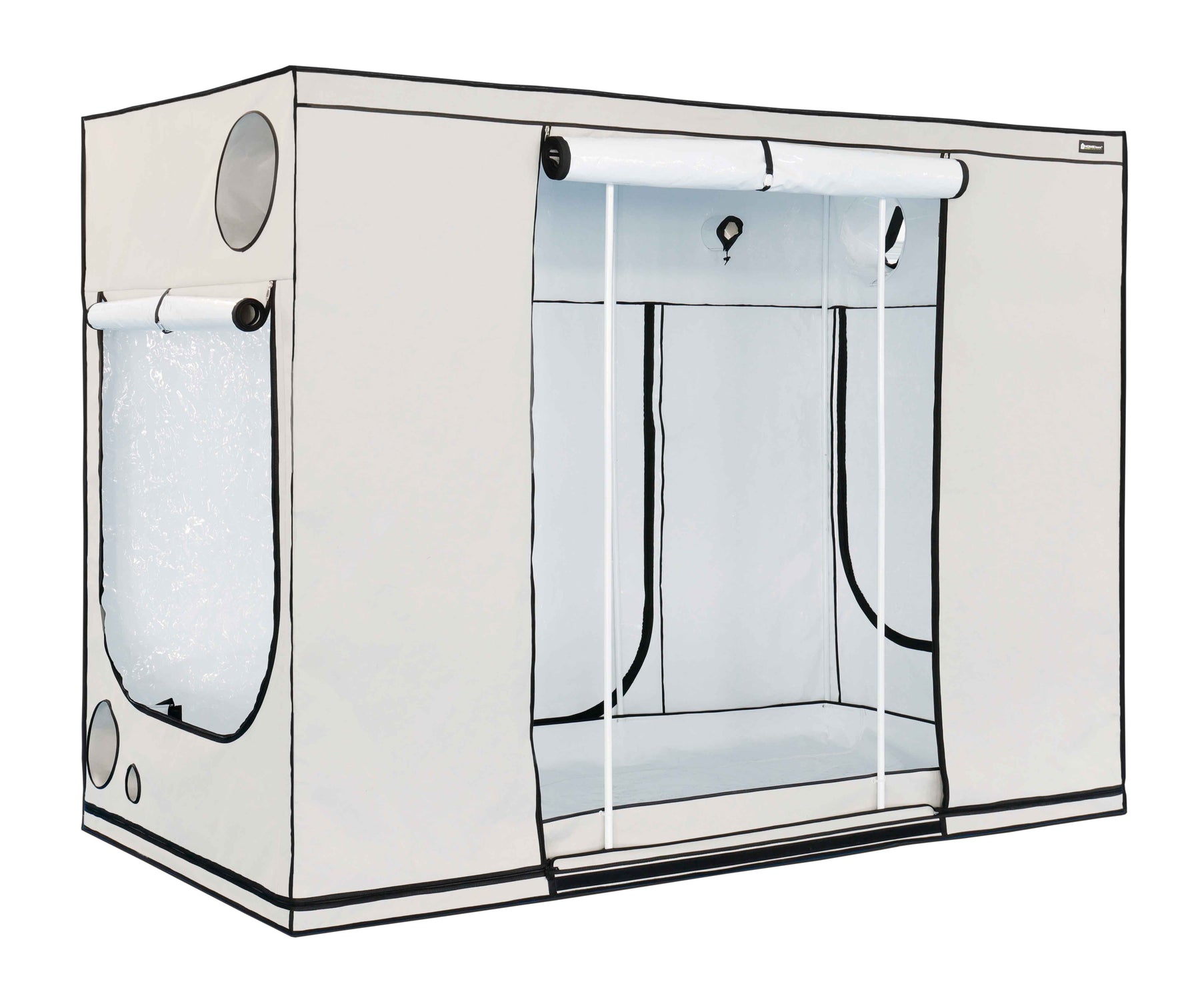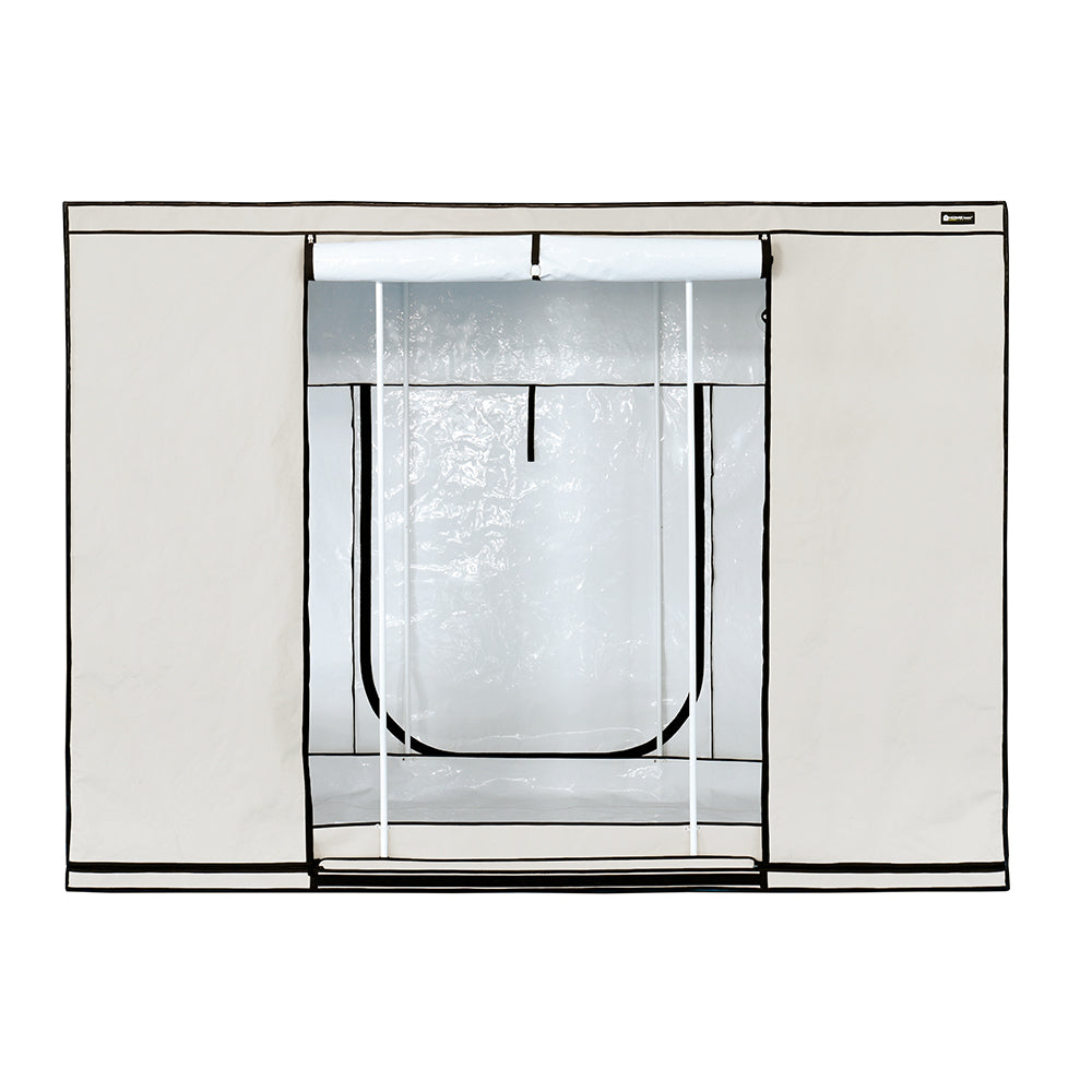 Das Zelt ist ideal für Grower, die gleichzeitig Fläche und Zugang benötigen. Die zugänglichkeit von allen Seiten ermöglicht komfortable Pflanzenpflege und einfache Wartung – ideal für regelmäßige Inspektionen und Umschichtungen. Die moderate Tiefe von 150 cm macht das Zelt auch für Räume mit begrenztem Platz interessant, ohne dabei Kompromisse bei der Beleuchtungsleistung einzugehen. Mit 220 cm Höhe bietet es ausreichend Raum auch für größere Pflanzen.